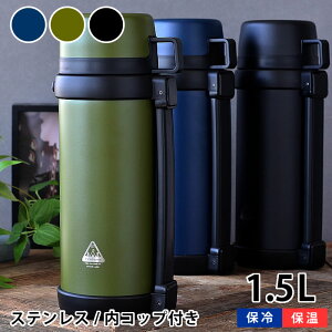 楽天市場 水筒 ヤホーム ファミリーボトル 1500ml 1 5リットル 大容量 コップ 2つ 1 5l メンズライク 運動会 アウトドア キャンプ おでかけ 保冷 保温 スクリュー 肩がけ ハンドル おしゃれ カーキ デザイン文具 Leilo レイロ
